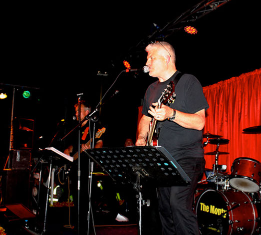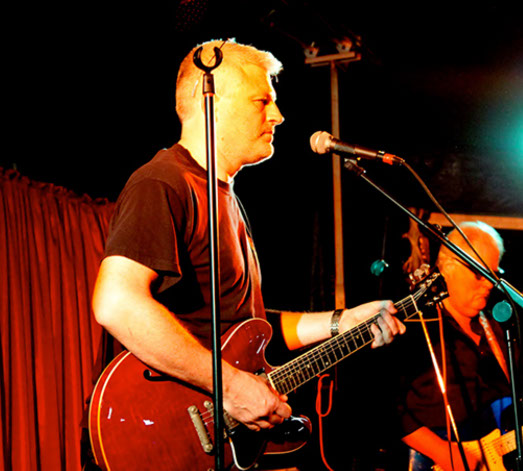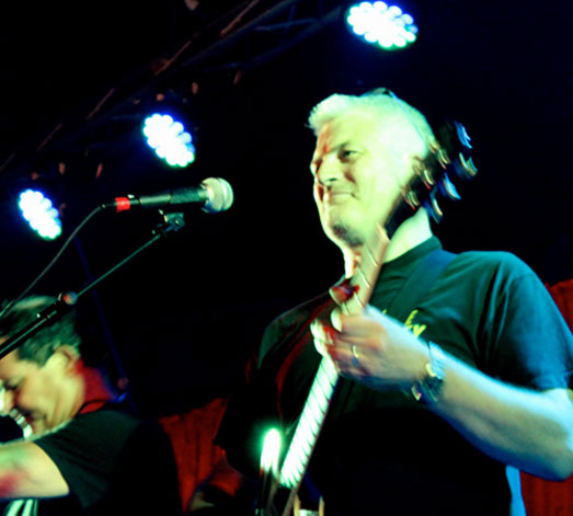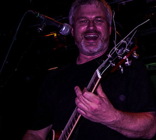 Nigel plays rhythm guitar and is therefore head of strumming. No lead breaks, but loves the rock and roll songs. He also can be seen as lead vocal on a few numbers, and backing vocals for most of the others.