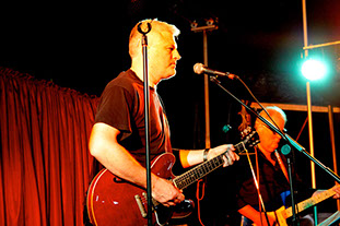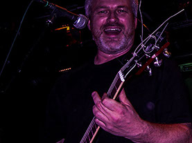 Nigel plays rhythm guitar and is therefore head of strumming.  No lead breaks, but loves the rock and roll songs.  He also can be seen as lead vocal on a few numbers, and backing vocals for most of the others.