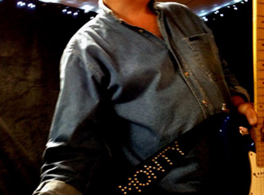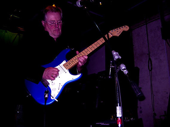 David plays the lead guitar (a nice blue one), and does all the fiddly bits.